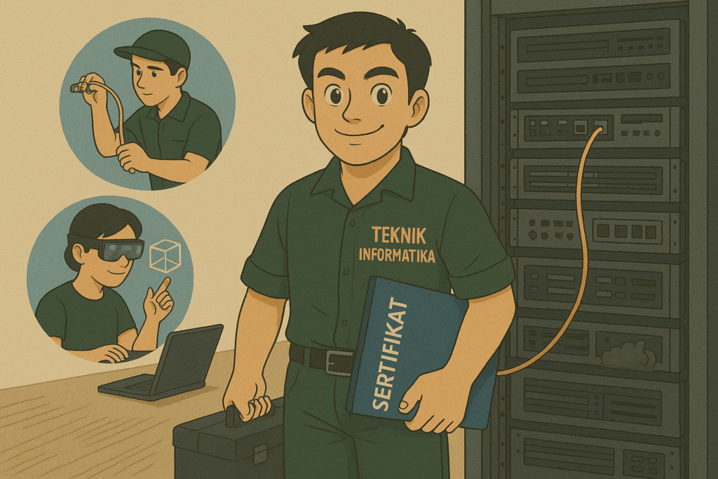 Teknik Informatika merupakan jurusan yang diminati. Disini Kita Belajar Tentang Perkembangan AI, Jaringan Komputer Dan Multimedia. Mari Menjadi Ahli Bersama Kami – Kaprodi Teknik Informatika